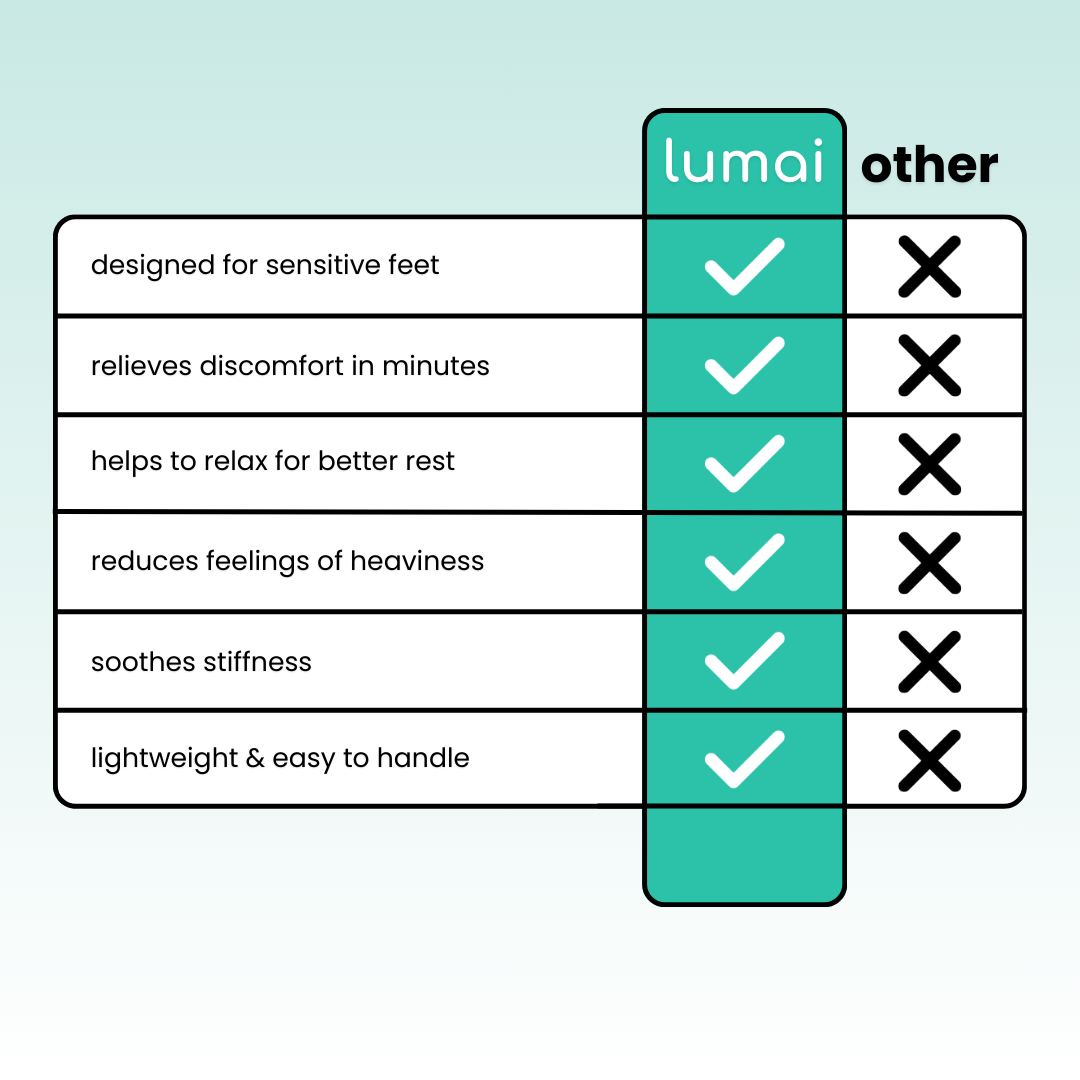 Lumai was born from a pain every pregnant mother knows — swollen, aching feet that nothing seemed to fix. After experiencing it firsthand, our founder set out to find a real solution. The result is a 3-in-1 therapy system designed to target the root cause of pregnancy foot swelling — not just the symptoms. Today, Lumai is helping thousands of mothers reclaim their comfort and enjoy pregnancy the way it should be.